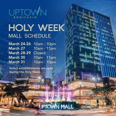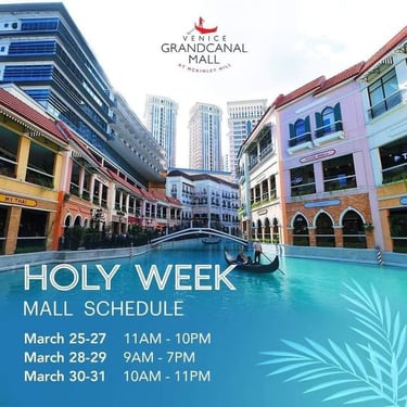 Holy Week Mall Hours: 📍Venice Grand Canal 📍Uptown Mall 📍Forbes Town Center #bgc #Easter #holyweek #VeniceGrandCanalMall #Uptown #forbstown